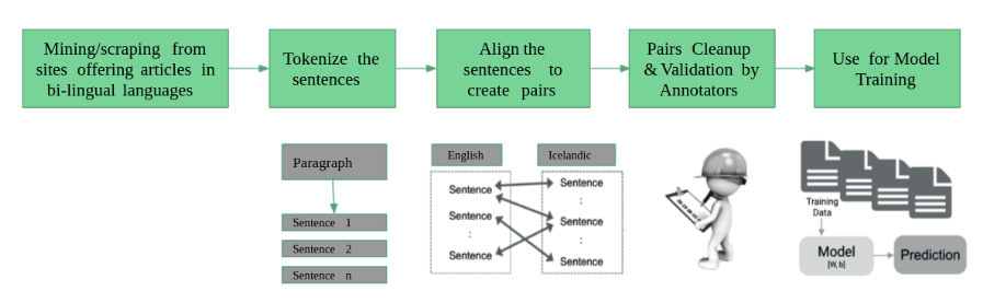 NMT requires parallel corpus between languages. Typically the size of language corpus is in the millions. The language corpus must have enough examples to cover various situations. This is one of the most important portions of the system and a very time consuming work where quality of data has to be checked to ensure the accuracy of translation. At Anuvaad, we have collected data for 11 languages as parallel corpora. The corpus is available under MIT license.